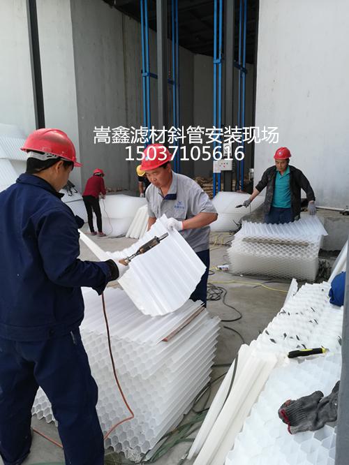 1、打開(kāi)斜管填料包裝,將第一片斜管填料平放于地面,取第二片斜管填料置于第一片填料之上,檢查斜管填料的切口,必須保證60°角、并呈六角蜂窩狀,檢查無(wú)誤后開(kāi)始燙接粘接點(diǎn);