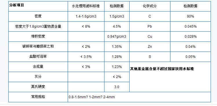 無(wú)煙煤濾料在水處理中起的作用好壞,直接影響濾過(guò)的水質(zhì),所以在選擇無(wú)煙煤濾料的時(shí)候,質(zhì)量必須符合國(guó)家相關(guān)標(biāo)準(zhǔn)。下為建設(shè)部水處理濾料監(jiān)督檢測(cè)中心頒布的CJ/T43 -2005《水處理用濾料》中無(wú)煙煤濾料的相關(guān)標(biāo)準(zhǔn)。